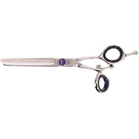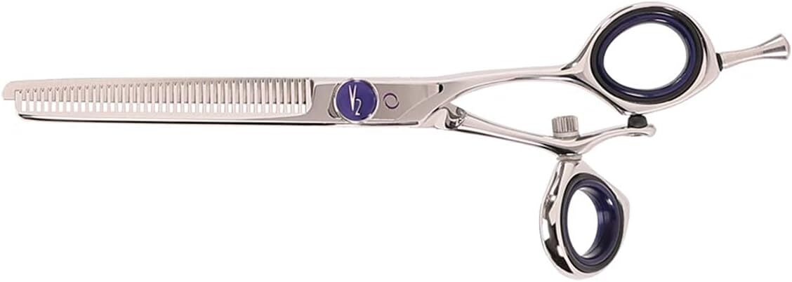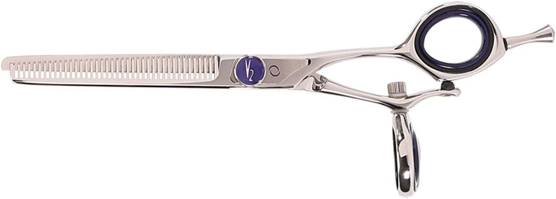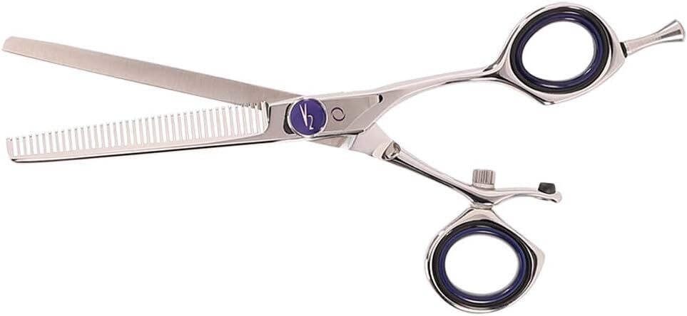 The ultimate shear combines technique with ergonomic perfection. The V2 39 Revolving Thumb Thinning Shear removes 50% bulk from hair. The revolving thumb offers the stylist complete mobility to create any cut with ease. V2™ offers the superior edge of its Maximum Convex Duridium blades and cryogenically tempers them to increase wear resistance and blade life up to 400%.