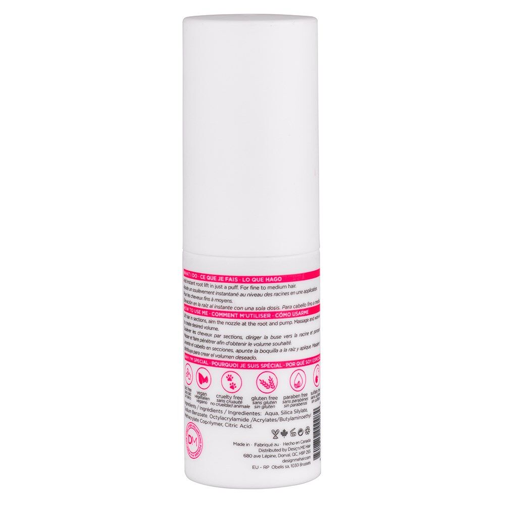 Design.ME Puff.ME Light Volumizing Cloud Mist adds maximum volume to fine hair, housed in an innovative pump applicator bottle, directing product onto hair to create mega volume right where you need it! The translucent powder is designed to be no mess, no fuss for easy salon styling. Simply spray onto roots and work into hair for style that won’t weigh your client’s hair down.