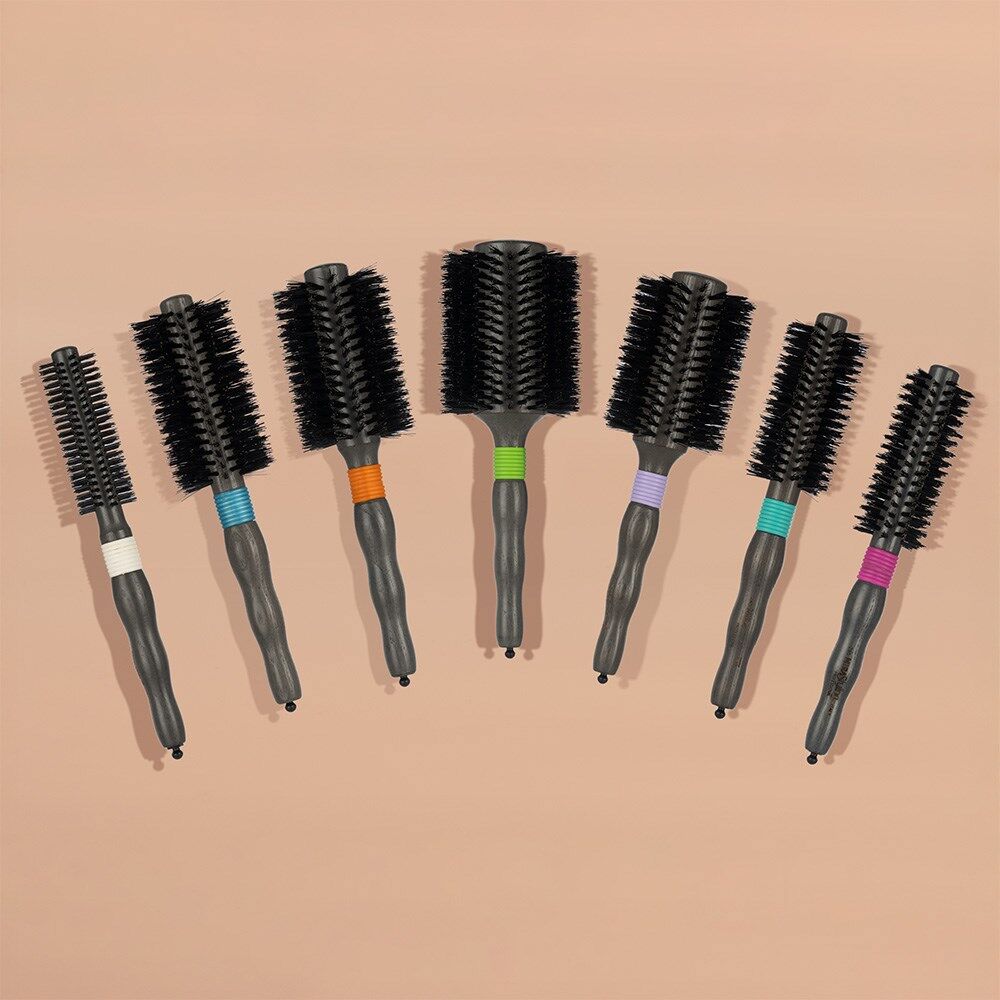 Achieve salon-quality results at home with the Mira 291 Boar Bristle Radial Brush X-Large. Designed for precision styling and superior control, this premium brush is ideal for creating volume, smooth curls, or polished blowouts on extra-long hair. Crafted in Italy, the Mira 284 features 100% natural boar bristles that gently grip the hair, distributing natural oils from root to tip for enhanced shine and reduced frizz. The extra large barrel is perfect for straightening, smoothing, or adding soft curls and waves with a professional-quality blow-dry. The ergonomic wooden handle ensures comfort and control during styling, making this brush a favourite among professional stylists and discerning individuals alike.