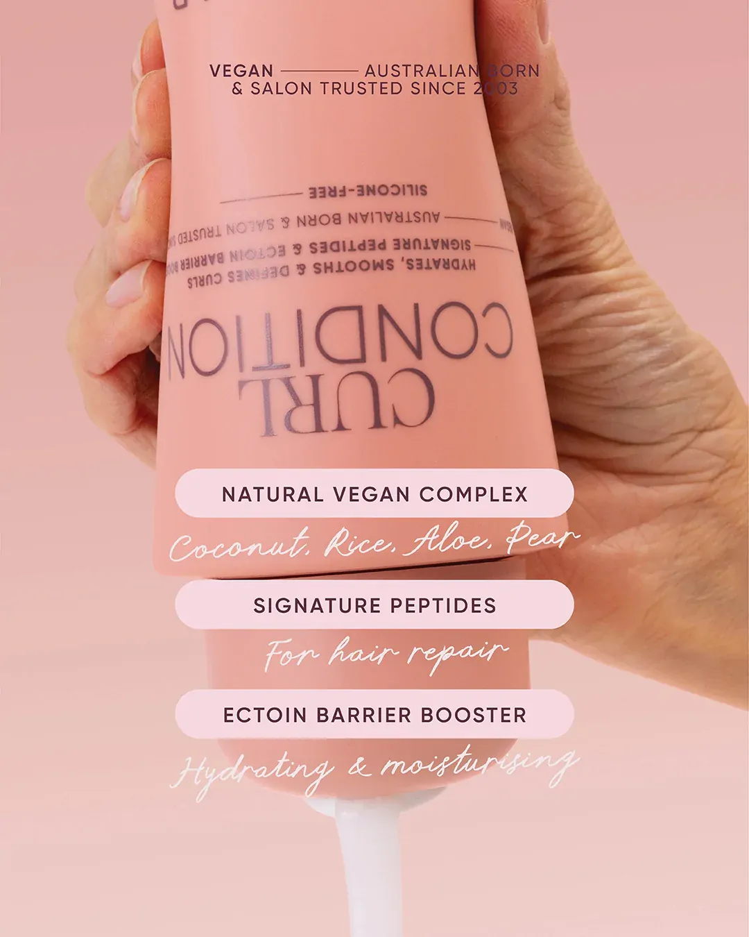 Signature Formula: A curl-taming conditioner that quenches your curls with a wave of hydration leaving curls soft, manageable, and full of life. Enriched with our Signature Peptides and Ectoin Barrier Booster that assist to repair and strengthen, nurturing the scalp microbiome for your healthiest hair.