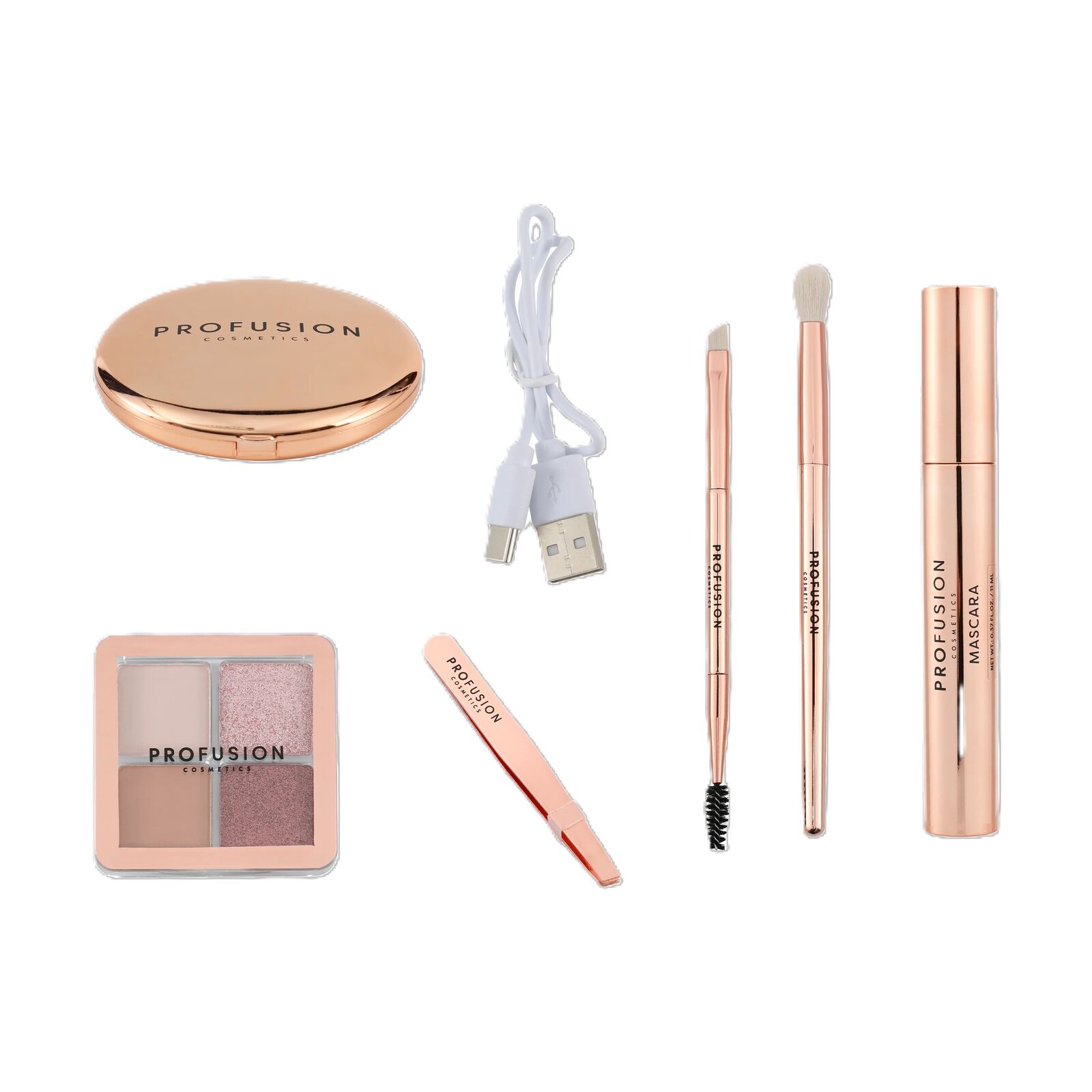 For seamless application, the soft buffing brush blends shadows with ease, and the dual-ended angled brush + spoolie gives you full control for sculpting brows, smudging liner, or nailing clean definition. The rechargeable light-up mirror makes touch-ups effortless, anytime, anywhere.